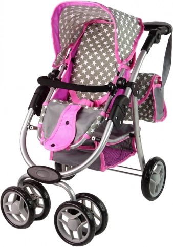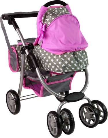 Der Kinderwagen mit rosa und grauen Sternen bereichert das tägliche Spiel Ihrer Kinder. Dieser aus hochwertigen Materialien hergestellte Wagen vermittelt den Kindern ein Gefühl von Fürsorge und Verantwortung. Das realistische Design erinnert an einen echten Kinderwagen und die Vorderräder ermöglichen eine einfache Steuerung und Manövrierfähigkeit.