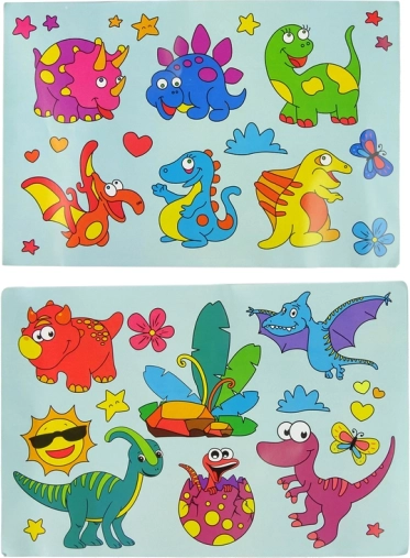 Das Set bietet eine große Auswahl an Dinosaurier-Schablonen, mit denen Kinder originelle 3D-Fensterbilder gestalten und Fenster oder Spiegel mit fantasievollen Motiven schmücken.
