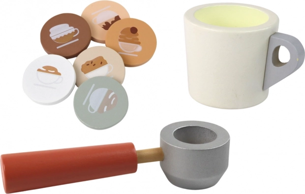 Die hochwertige Kombination aus Holz und Kunststoff ist langlebig und angenehm anzufassen. Das Spiel mit der Kaffeemaschine fördert die Feinmotorik, die Hand-Auge-Koordination sowie soziale Fähigkeiten beim gemeinsamen Spiel. Dank der kompakten Abmessungen lässt sich die Kaffeemaschine leicht transportieren und verstauen.
