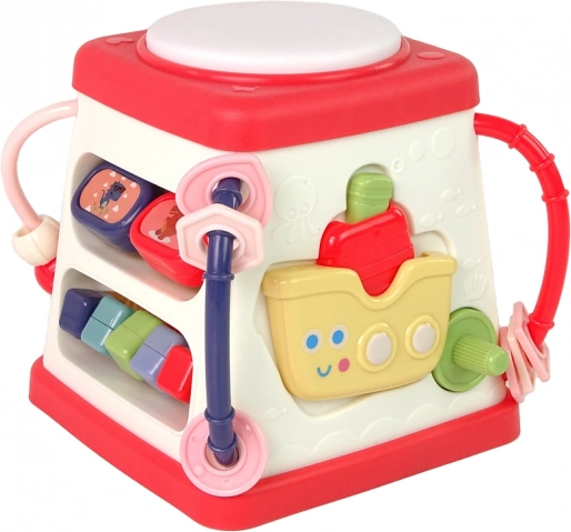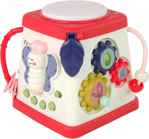 Dieser farbenfrohe interaktive Würfel vereint mehrere Aktivitäten in einem cleveren Ganzen. Jede Seite fördert eine andere Fähigkeit: von der Stärkung der Feinmotorik über die Entwicklung von Hör- und Sehvermögen bis hin zum ersten Wortschatz in Englisch. Dank der kräftigen Farben und angenehmen Klänge werden Kinder das Spielen sofort lieben.