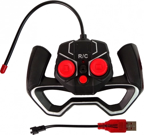 Der leichte Zweistick-Controller liegt hervorragend in der Hand. Den Fahrzeugakku laden Sie bequem mit dem beiliegenden USB-2.0-Kabel.