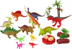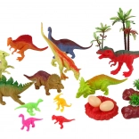 Das Set enthält acht große und vier kleine Dinosaurierfiguren, jede stellt eine andere Art dar und hat ihre eigene, einzigartige Farbe.