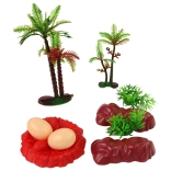 Die Accessoires bestehen aus zwei Steinen, zwei Büschen, zwei Bäumen und zwei Dinosauriereiern mit Sockel, die authentische Szenarien abrunden und das kreative Potenzial des Spiels erhöhen. Zudem ist dieses Set aus langlebigem Kunststoff gefertigt, was eine lange Lebensdauer und Widerstandsfähigkeit gegenüber den Abenteuern der Kinder garantiert.