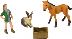 Figuren-Set mit hellem Pferd, Hase und Tierarzt für kreatives Spielen. Realistische Ausführung, Hartgummi und ungiftige Materialien sorgen für sicheren Spaß für Kinder ab 3 Jahren.