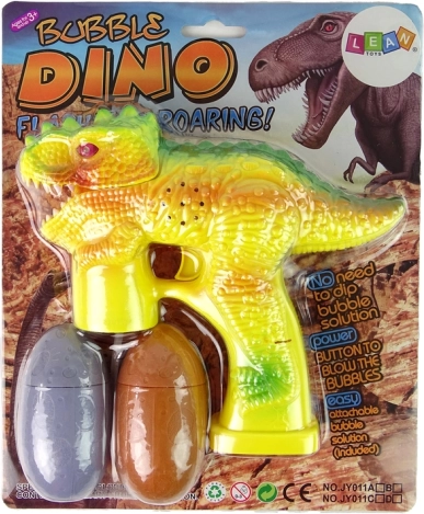 Die Seifenblasenpistole in Dinosaurierform überzeugt mit ihrem leuchtend gelben Design und der einfachen Bedienung. Einfach den Behälter mit Lösung aufsetzen und den Abzug drücken – im Nu füllt sich die Umgebung mit zauberhaften Seifenblasen. Die robuste Kunststoffkonstruktion garantiert langlebigen und sicheren Spielspaß.