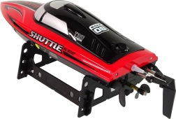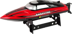 Dieses flinke RC-Boot mit der Bezeichnung Shuttle ist sofort fahrbereit – einfach den beiliegenden Akku einsetzen und ab aufs Wasser. Dank des leistungsstarken Antriebs erreicht es Geschwindigkeiten von bis zu 25 km/h, während der Anti-Kollisionsschutz den Rumpf bei scharfen Manövern schützt. Der ergonomische Pistolen-Sender liegt hervorragend in der Hand und erlaubt präzises Steuern.