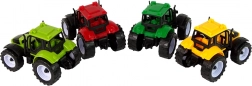 Das Set enthält Traktoren in vier Farben: Dunkelgrün, Hellgrün, Orange und Rot.
