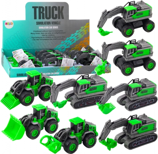 Baufahrzeug mit Aufzieh-/Reibungsantrieb – Minibagger, Radlader oder Bulldozer, grün