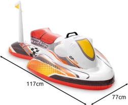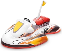 Das kompakte Design ermöglicht schnelles Aufpumpen und Entleeren sowie einfaches Tragen. Das Design mit dem Motiv Wave Rider GP500 und kleiner Fahne begeistert kleine Fahrer und fördert fantasievolles Spielen im Pool und auf ruhiger Wasseroberfläche.