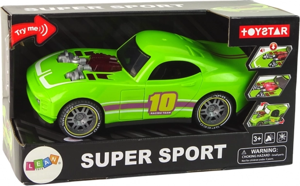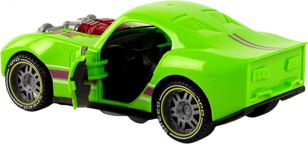 Bereiten Sie kleinen Geschwindigkeitsfans Freude mit diesem grünen Sportauto im Maßstab 1:14. Realistische Licht- und Soundeffekte, per Knopfdruck aktiviert, und öffnende Türen auf beiden Seiten verleihen dem Spiel mehr Authentizität. Der Schwungradantrieb (Reibung) sorgt für flotte Fahrten ohne Fernbedienung.