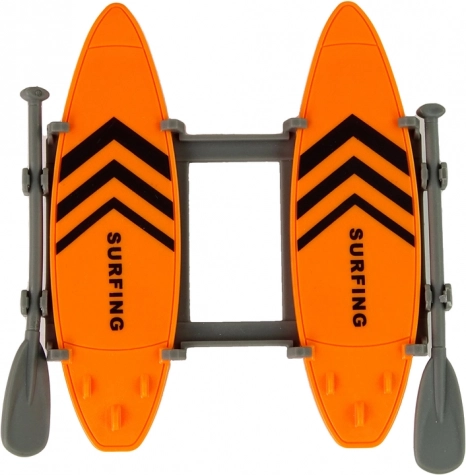 Zwei Surfbretter und zwei Paddel auf dem Dachträger fördern das kreative Spiel und Strandgeschichten.