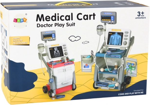 Wagen auf Rollen, Spritze, Schere, Stethoskop, dekorative Aufkleber, Gebrauchsanweisung