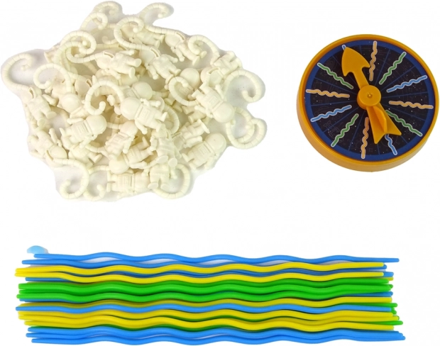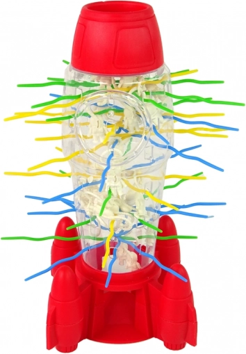 Beginnen Sie das Spiel, indem Sie die Rakete zusammenbauen und die Stäbe in die entsprechenden Öffnungen stecken. Die Astronauten, die vom oberen Ende des Turms hinabgelassen werden, haken sich mit Teilen ihres Raumanzugs an die Stäbe. Sind alle Astronauten platziert, kann der Spaß beginnen. Der erste Spieler wählt durch Drehen des Ziehrädchens die Farbe eines Stabs. Anschließend muss er den Stab in der entsprechenden Farbe vorsichtig entfernen und dabei versuchen, die Astronauten nicht fallen zu lassen.