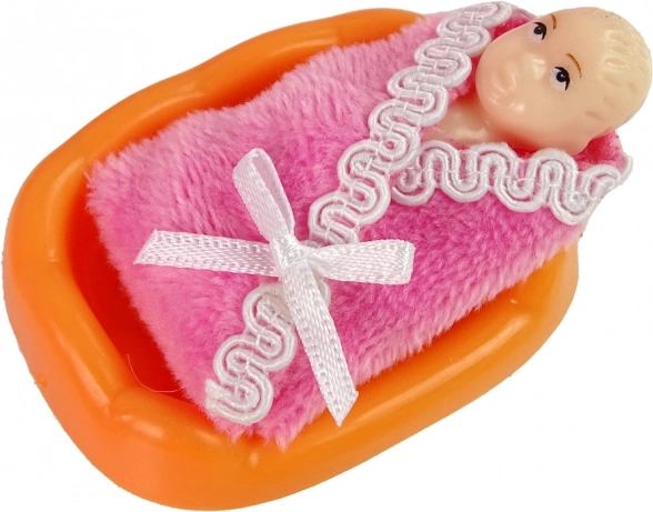 Zum Set gehört auch eine kleine Puppe – ein kleines Mädchen mit blonden Haaren und blauen Augen. Das gesamte Set wird durch reichhaltiges Zubehör ergänzt, wie Kamm, Tasse, Schnuller, Badeente, Fläschchen, Plüschbär und Hochstuhl. Ein ideales Geschenk für kindliche Kreativität und die Entwicklung von Fürsorgefähigkeiten.
