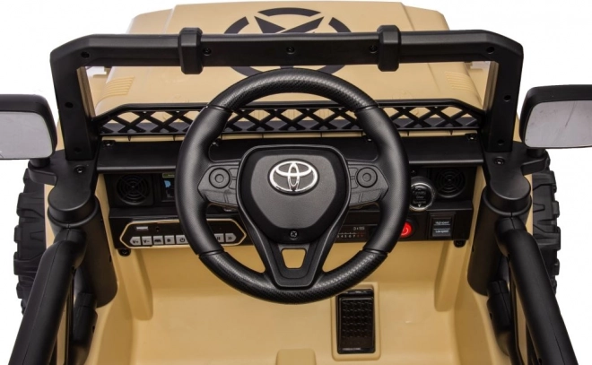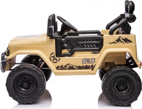 Entdecken Sie ein Kinderfahrzeug, das realistische Offroad-Optik mit Komfort und Sicherheit verbindet. Das elektrische Auto TOYOTA FJ in Khaki besitzt markante Räder mit grobem Profil, einen Schutzrahmen und Lichter – genau das, was Kinder auf abenteuerlichen Ausflügen lieben.