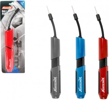 Effektive und kompakte Xorenx Ballpumpe mit universellem Einsatz dank drei metallischen Spitzen. Perfekt zum schnellen Aufpumpen von Sportbällen.