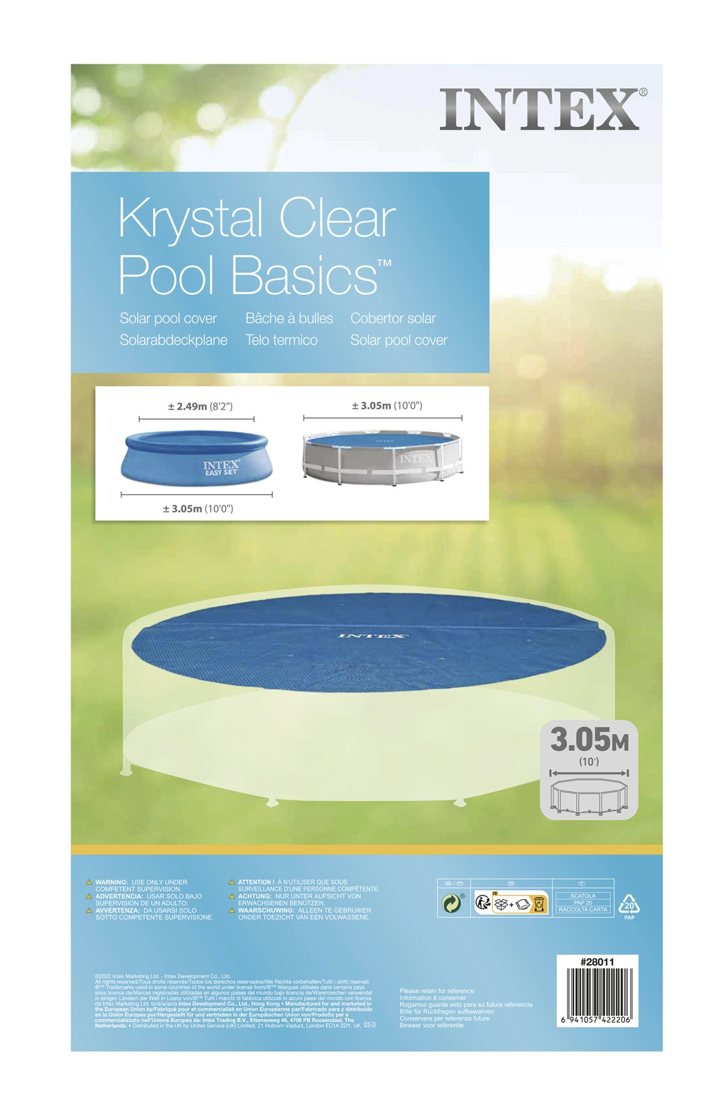 Genießen Sie wärmeres und saubereres Wasser ohne Aufwand. Die INTEX-Solarabdeckung mit Noppenstruktur nutzt Sonnenenergie zur natürlichen Erwärmung und dient gleichzeitig als Isolationsschicht, die Verdunstung und nächtliche Abkühlung begrenzt.