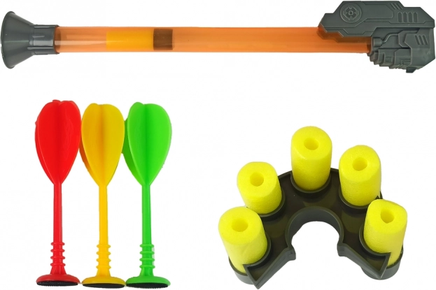 • Das Set enthält 6 Plastikbälle, 3 Klettpfeile und ein Rohr zum Abschießen von 6 Projektile.