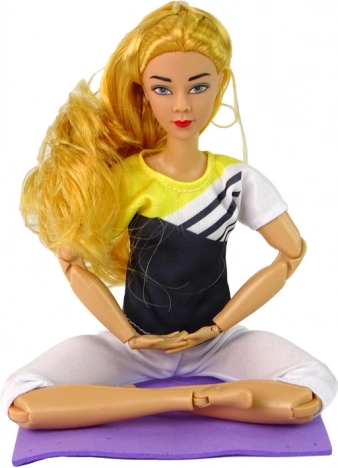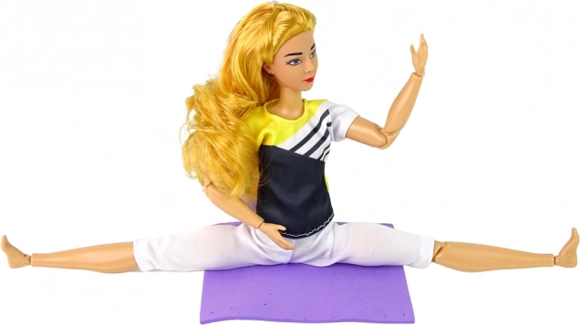 Die Haare lassen sich kämmen und stylen, das sportliche Outfit unterstreicht das thematische Spiel. Die Matte 12 × 10 cm ermöglicht ein eigenes Mini-Yogastudio.