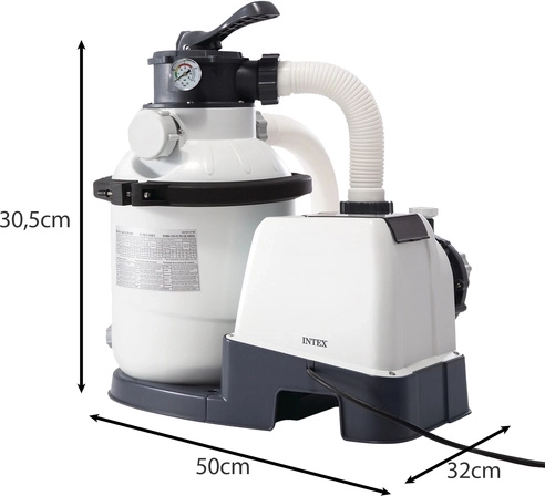 Die INTEX-Sandfilteranlage ist die ideale Wahl für mittelgroße und große Aufstellpools. Die hohe Durchflussrate von 5700 l/h und das Hydro Aeration-System verbessern die Zirkulation und Sauerstoffanreicherung des Wassers deutlich, was sich in seiner Klarheit und dem Badekomfort widerspiegelt. Ein korrosionsbeständiger Tank, ein übersichtliches Manometer und ein drehbarer Ringflansch erleichtern Installation und Wartung.