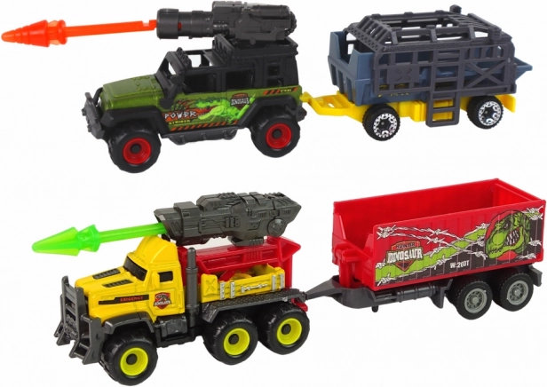 Großes Dinosaurierset mit Hubschrauber und Fahrzeugen entführt Kinder in die faszinierende Welt der Entdeckungen und Abenteuer. Es enthält drei Fahrzeuge mit Anhängern für den Transport von Dinosauriern, von denen zwei einen drehbaren Shooter für zusätzlichen Spielspaß haben. Durch die detaillierte Verarbeitung werden diese Spielsachen noch interessanter.