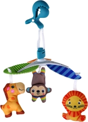 Das Karussell wird mit einem speziellen Clip befestigt, was sein einfaches und sicheres Anbringen an beliebigen Orten ermöglicht. Sie können es am Bettchen, Kinderwagen oder Tragegurt anbringen und somit dem Kind jederzeit Freude an den bunten Tieren bereiten.
