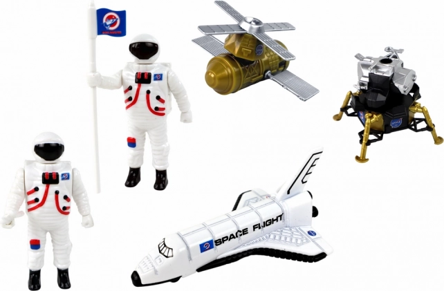 2 Astronautenfiguren, Rakete, Raumfahrzeug (Rover), Satellit, Raumschiff, Zubehör
