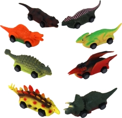 Das Set enthält eine Sammlung von acht Dinosauriern in verschiedenen Farben und Formen, darunter Triceratops und Stegosaurus, was dem Spiel Vielfalt und Spaß verleiht.