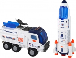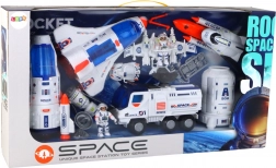 Erlebe spannende Abenteuer im Weltall mit diesem umfangreichen Weltraumspielset. Im Mittelpunkt steht eine große Rakete in ansprechenden Weiß- und Blautönen, die mit erstaunlichen Details wie Triebwerken, Eingängen und Kabinenfenstern ausgestattet ist. Oben drauf befindet sich ein Raumschiff, das kosmische Abenteuer verspricht.