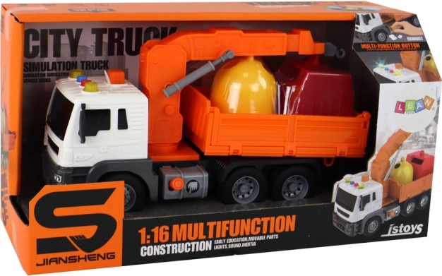 Müllwagen mit Kran Reibungsantrieb Orange 1:16