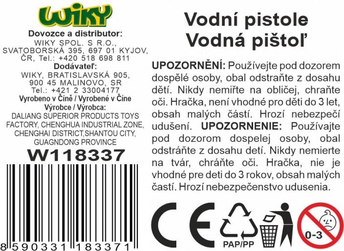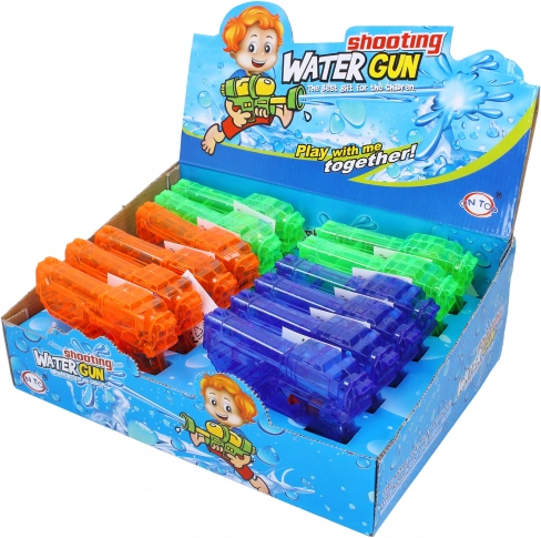 Stilvolle Wasserpistole mit einer Länge von 15 cm ist ideal zur Erfrischung an heißen Sommertagen. Erhältlich in drei Farbvarianten - blau, grün und orange.