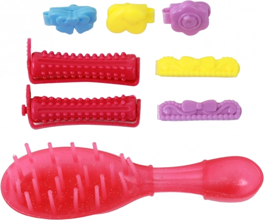 Im Lieferumfang sind alle notwendigen Accessoires für einzigartige Frisuren enthalten – zwei Lockenwickler, fünf verschiedene Haarspangen und eine stylische Bürste. Mit diesem Set fördern Sie die Kreativität und Styling-Fähigkeiten Ihres Kindes.