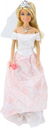 Wir präsentieren Ihnen eine schöne Hochzeitspuppe, die jedes Kinderspiel erhellt. Gekleidet in ein langes weißes Robe mit hellrosa Details bringt sie Eleganz und Charme. Die Puppe hält einen Blumenstrauß, der perfekt zu ihrem raffinierten Aussehen passt.