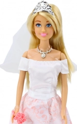 Elegantes Diadem und Halskette zusammen mit Blumenstrauß verleihen der Puppe eine noble Erscheinung, ideal für die Rolle der Braut.