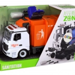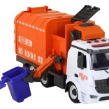 Dieses realistische Müllwagen-Set bietet Kindern stundenlangen, kreativen Spielspaß. Der orange-weiße Wagen mit funktionaler Halterung für den Behälter simuliert das Einsammeln von Abfällen originalgetreu. Den Schwungradantrieb einfach durch Anschieben auf einer glatten Oberfläche „aufziehen“ – der Wagen fährt dann von allein. Licht und Sound steigern die Authentizität des Spiels.