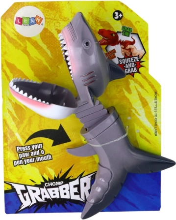 Das unterhaltsame Beißspielzeug in Form eines Hais an einer Feder bringt Kindern viel Spaß und Action. Beim Drücken des Auslösers schließt sich das Maul schnell und imitiert einen Räuber. Das Spielzeug fördert die Feinmotorik, stärkt die Vorstellungskraft und ist dank der robusten Konstruktion langlebig für langes Spielen. Geeignet für Kinder ab 3 Jahren.