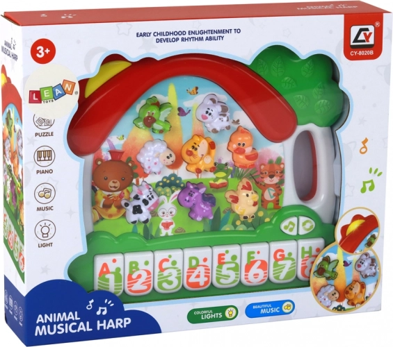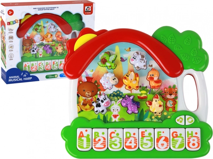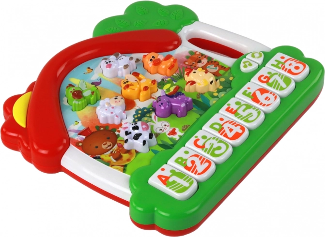 Das Klavier enthält Tasten, die von A bis H gekennzeichnet sind, was das Erlernen des englischen Alphabets erleichtert. Jeder Buchstabe ist einem bestimmten Tier und dem entsprechenden Laut zugeordnet. So lernt das Kind nicht nur die Buchstaben, sondern auch deren Aussprache und verbindet sie mit konkreten Tieren.