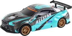 Die robuste Karosserie in türkis-schwarzer Kombination und die goldenen Räder verleihen einen sportlichen Charakter, während der 7,4V-Akku genügend Energie für dynamisches Fahren liefert. Das Modell ist geeignet für Kinder ab 6 Jahren, erfüllt die Normen CE und EN71.