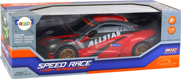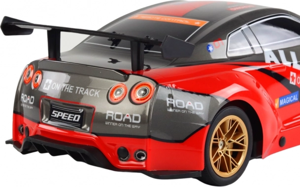 Der realistische Look mit roter Karosserie und goldenen Felgen wird durch Lichteffekte betont, die besonders in der Dämmerung zur Geltung kommen. Enthalten sind ein wiederaufladbarer 7,4 V Akku und ein USB-Ladekabel, sodass Sie schnell wieder auf die Strecke können.