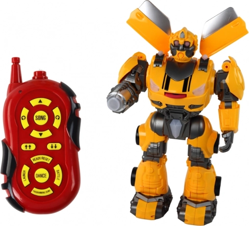 Der Roboter besteht aus robustem Kunststoff mit auffälligem gelb-schwarzem Design und beweglichen Gliedmaßen. Die solide Konstruktion gewährleistet eine lange Lebensdauer und eine sichere Nutzung. Dank der Zertifizierungen CE und Konformität mit der Norm EN71 ist er für Kinder ab 3 Jahren geeignet.