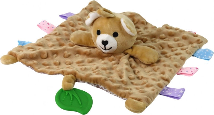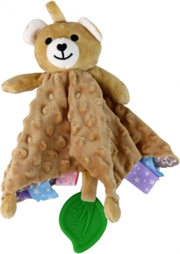 Die Decke dient sowohl als beruhigender Plüschfreund als auch als praktisches Werkzeug mit einer Schlaufe zur einfachen Befestigung am Kinderwagen oder Bettchen.