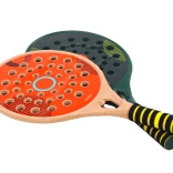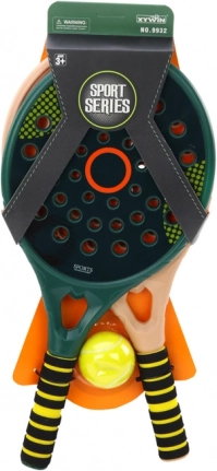 .Set aus 2 Padel-Schlägern für das Spiel Padel in eleganten Grün- und Cremefarben. Die Schläger bestehen aus hochwertigem Kunststoff, sind stabil und robust. Anstelle einer Bespannung (wie bei einem traditionellen Tennisschläger) gibt es eine Kunststofffläche mit Löchern.