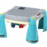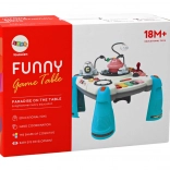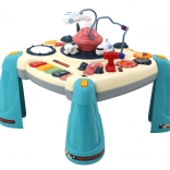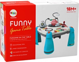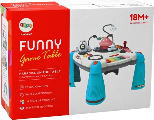 Auf dem Tisch befindet sich ein Modul mit einem Klavier, das Kindern das Alphabet und Zahlen auf Englisch beibringt. Das sorgt nicht nur für Spaß, sondern auch für lehrreiche Erfahrungen. Auf der anderen Seite des Tisches befinden sich verschiedene sensorische Spielzeuge, die ideal für die Entwicklung der Feinmotorik und sensorischen Wahrnehmung sind.