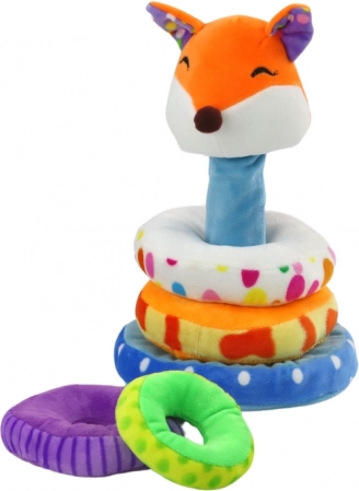 Diese farbenfrohe Plüschpyramide ist angenehm anzufassen und lässt sich dank ihrer Pyramidenform leicht stapeln. Ringe in unterschiedlichen Größen und kräftigen Farben fördern die Hand-Auge-Koordination, die Entwicklung der Feinmotorik sowie erstes logisches Denken. An der Spitze wartet ein niedlicher Fuchs, der die Fantasie anregt und Lernen spielerisch macht.