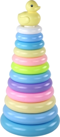 Diese lehrreiche Stapel-Pyramide in Pastellfarben motiviert Kinder, 12 Ringe vom größten zum kleinsten zu sortieren und aufzustecken. Spielerisches Lernen fördert die Feinmotorik, die Hand-Auge-Koordination, Geduld und Fantasie. Das Oberteil ziert ein niedliches Entchen, das zu weiteren Spielen einlädt.