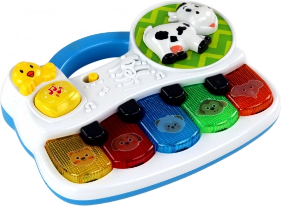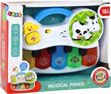 Das kleine, tragbare Piano ist für Kinderhände und die ersten musikalischen Schritte konzipiert. Bunte Tasten mit Tiermotiven laden zum Spielen ein, Lichter belohnen beim Tastendruck visuell und einfache Melodien fördern die natürliche Neugier.