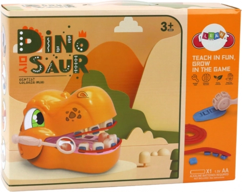 Unterhaltsames Kreativ-Set für kleine Zahnärzte mit einem Dinosaurierkopf und umfangreicher Ausstattung. Kinder probieren die Behandlung von Zähnen, das Formen von Füllungen und sogar Zahnspangen aus. Fördert Kreativität, Feinmotorik und hilft, Angst vor dem Zahnarzt abzubauen. Im Set enthalten sind 10 Farben Knete, 7 dentale Werkzeuge und ein Dinosaurierkopf mit Zahnformen.