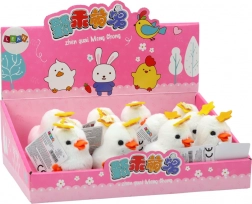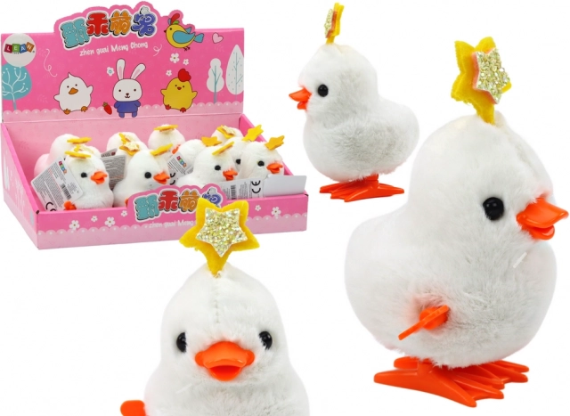 Aufziehbares Springhühnchen mit Stern ist ein niedliches Spielzeug, das sicherlich jedes Kind mit seinem Charme und seinen Bewegungen begeistern wird. Es ist aus weißem Plüsch gefertigt und mit einem kleinen goldenen Stern auf dem Kopf verziert, was ihm zusätzlichen Charme verleiht.