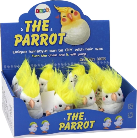 Einfach das Aufziehwerk drehen und der Papagei beginnt zu hüpfen. Tolle aktive Unterhaltung, die Neugier und Motorik fördert.