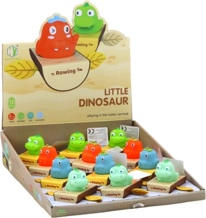Aufzieh-Spielzeug für die Badewanne – Dinosaurier im Boot ist der ideale Begleiter für fröhliches und kreatives Baden. Einfach das untere Aufziehrad drehen, das Boot aufs Wasser setzen und zusehen, wie es sich dank der zwei seitlichen, blattförmig paddelnden Schaufeln von selbst über die Oberfläche bewegt. Der farbenfrohe Dinosaurier an Bord lädt zu Geschichten und Rollenspielen ein.